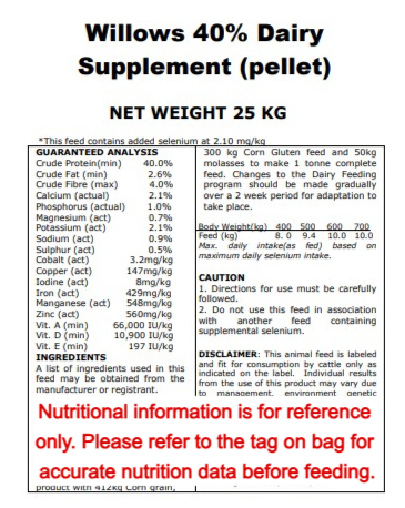 WILLOWS 40% MILK MAKER DAIRY SUPPLEMENT PELLET
